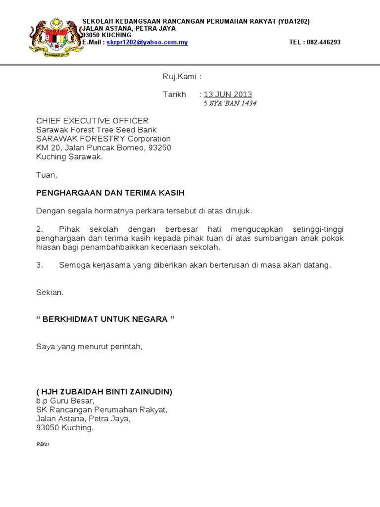 Contoh Surat Ucapan Terima Kasih Kerajaan Pdf
